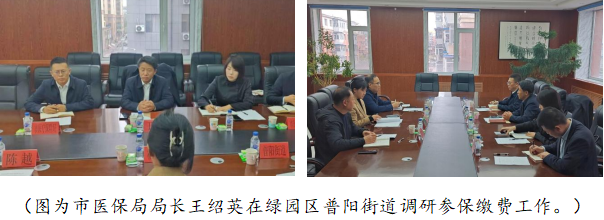 市局包保责任组高位统筹。5月8日,市医保局党组书记、局长王绍英率队,前往包保责任区绿园区普阳街道调研参保扩面难点堵点、研讨问题解决方案,确保定位找得准、短板盯得牢、举措抓得实,避免因“漏报、断保、脱保”导致群众“医无所保”。